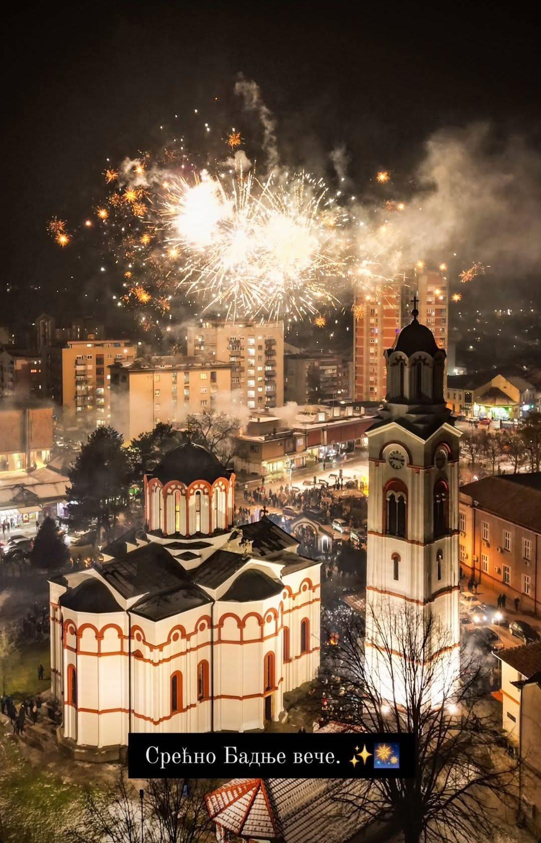 Бадње вече је у духу вере, традиције и заједништва обележено и код цркве Светог Вазнесења Господњег у Великој Дренови, где су се верници окупили у прелепом ноћном амбијенту уз паљење бадњака и ватромет.