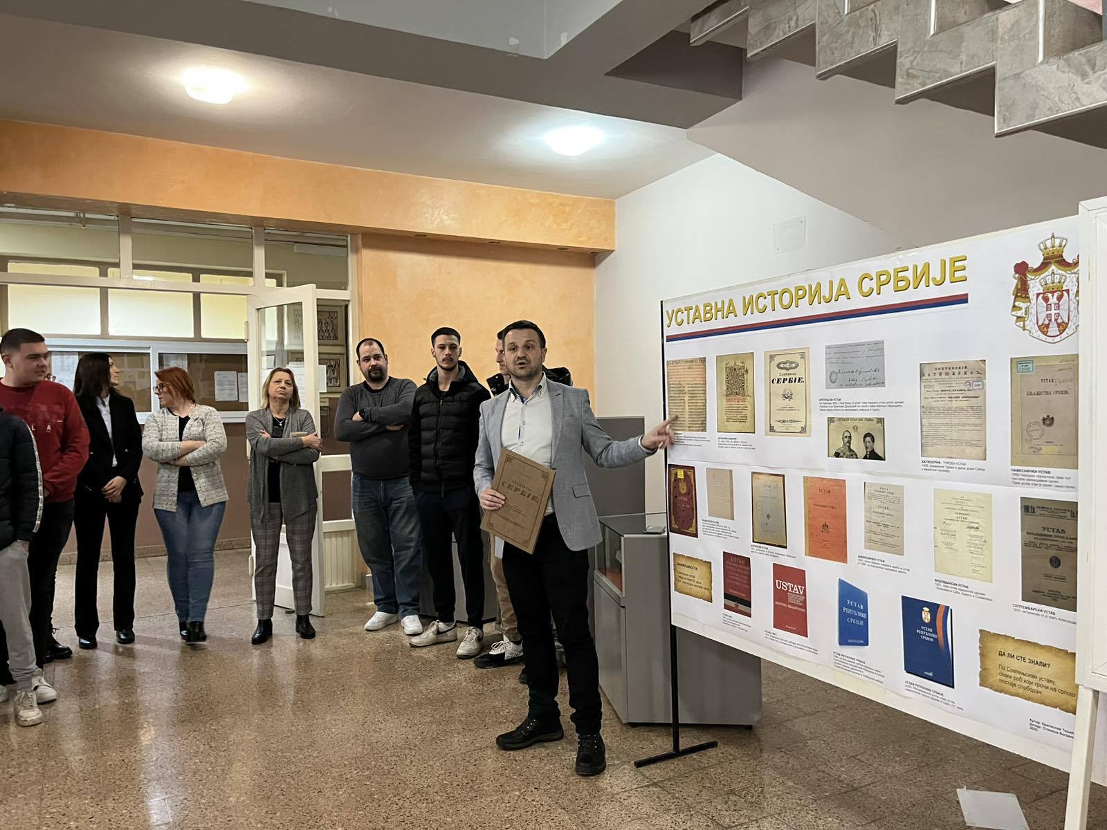 У оквиру предавања представљен је и пано са фотографијама свих уставних докумената о којима је било речи, док су ученици могли да разгледају реплику Сретењског устава. На крају, професор Ташић дочарао је атмосферу радости и одушевљења која је 1835. године завладала у Крагујевцу и широм Србије након проглашења устава, приближивши ученицима дух времена у којем је тај историјски документ донет.